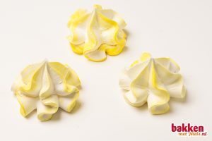 Doe de mix en het water in een schone beslagkom en meng het kort door elkaar. Klop het beslagmengsel met de mixer met schone garden op de hoogste stand in minimaal minuten stijf. Het beslagmengsel is stijf genoeg wanneer de beslagkom ondersteboven gehouden kan worden zonder dat de meringue eruit loopt. Voeg tenslotte 100 gram poedersuiker toe en mix het geheel nog drie à vier minuutjes in een lagere versnelling. Verdeel het beslagmengsel met twee grote eetlepels of met een spuitzak in gewenste porties over de bakplaten. Met de handige deegkrabbers van Bakken met Niels lukt dit ook prima. Of wat dacht je van een ijsknijper? Zorg voor ongeveer twee cm ruimte tussen de meringues.